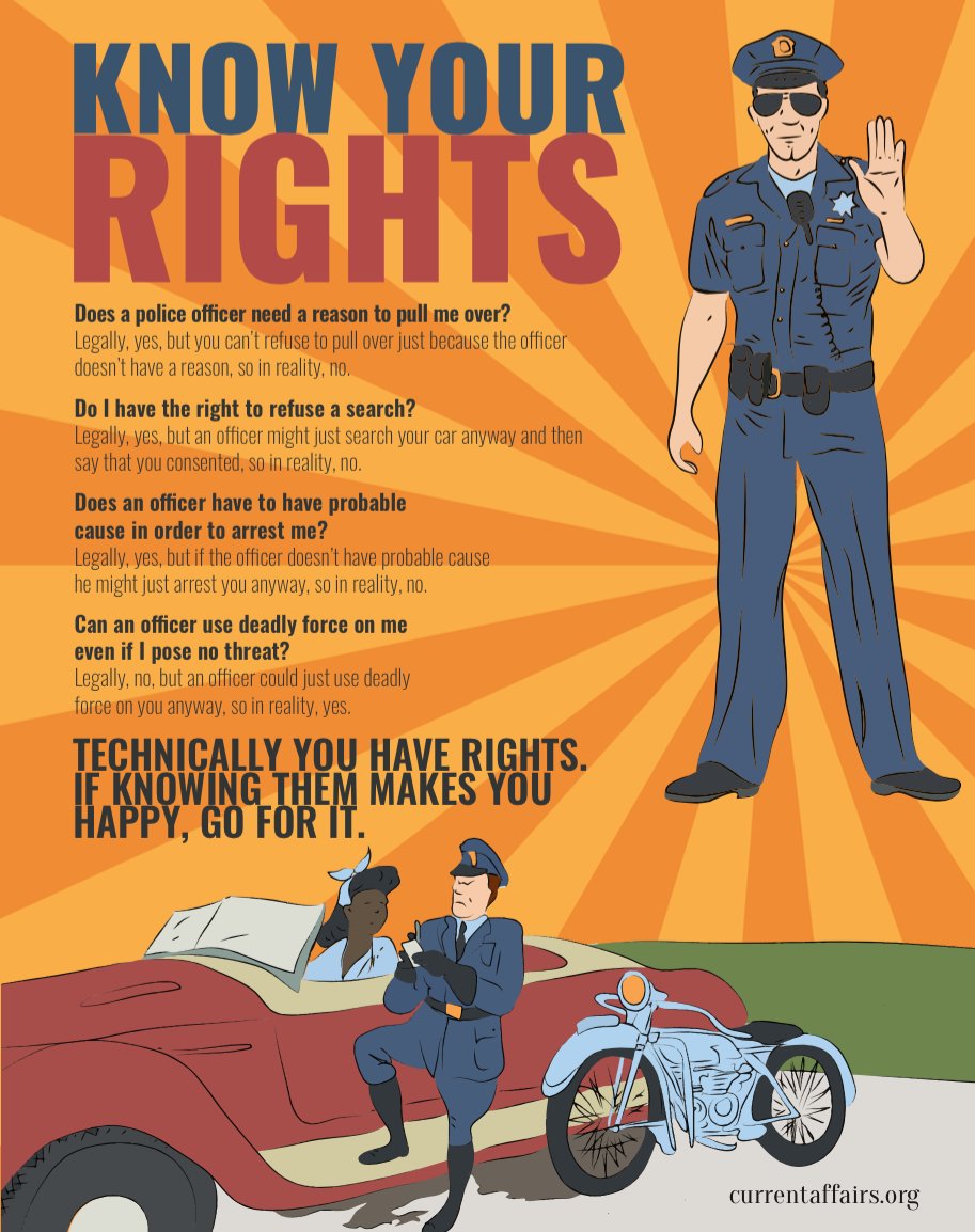 Yeah, like, it's as easy as not responding with an answer when they ask you if you know how fast you were going. It's not that hard and if you're polite and you're white you're probably going to be okay.