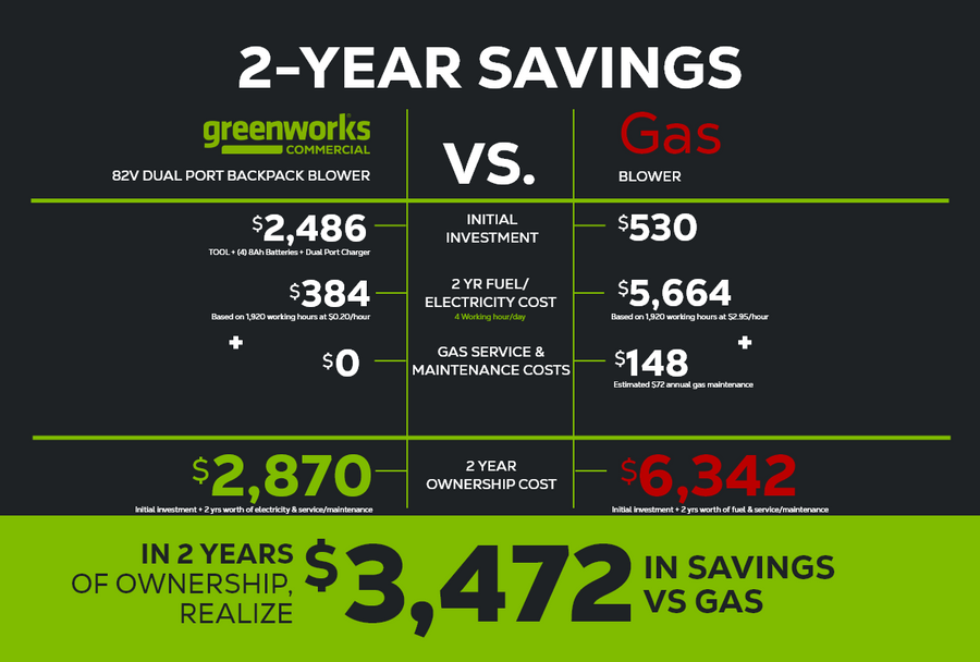In the end the extra battery cost might be cheaper than the gas and maintenance requirements for gas blowers over time.