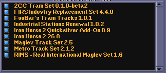 - HEQS [heavy equipment road vehicles, is also good road vehicle set, I'm not sure if it works with all FIRS' cargo].